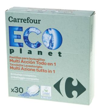 Carrefour ECO Planet cuenta con un surtido de productos de higiene personal y artículos de limpieza: limpiacristales, limpiador multiusos, lavavajillas, detergente, papel cocina o pañales.