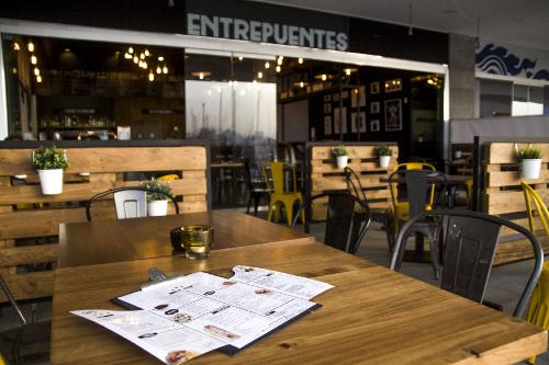 El precio es inferior al de Entrepuentes pero con la misma calidad. Además de por la calidad de su oferta y la agilidad de su servicio, Entrepuentes City se caracteriza por un diseño moderno, joven y divertido, acercándose al ambiente de las cervecerías actuales, con una decoración y ambiente muy cuidados. Su decoración mezcla un estilo urbano, industrial y desenfadado, característico de las clásicas cervecerías, con toques vintage. La propuesta crea un ambiente muy cálido y acogedor.