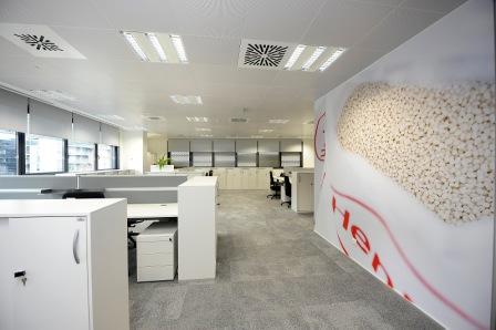La nueva sede -en la calle Bilbao 72-84- se distribuye en 6 plantas y abarca un total de 8.000 m2 de oficinas y jardín privado donde se ha emplazado el equipo de Henkel Ibérica conformado por unos 500 empleados.