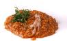 Merluza rellena de carabineros a la sidra con guarnición de lenguas de pato