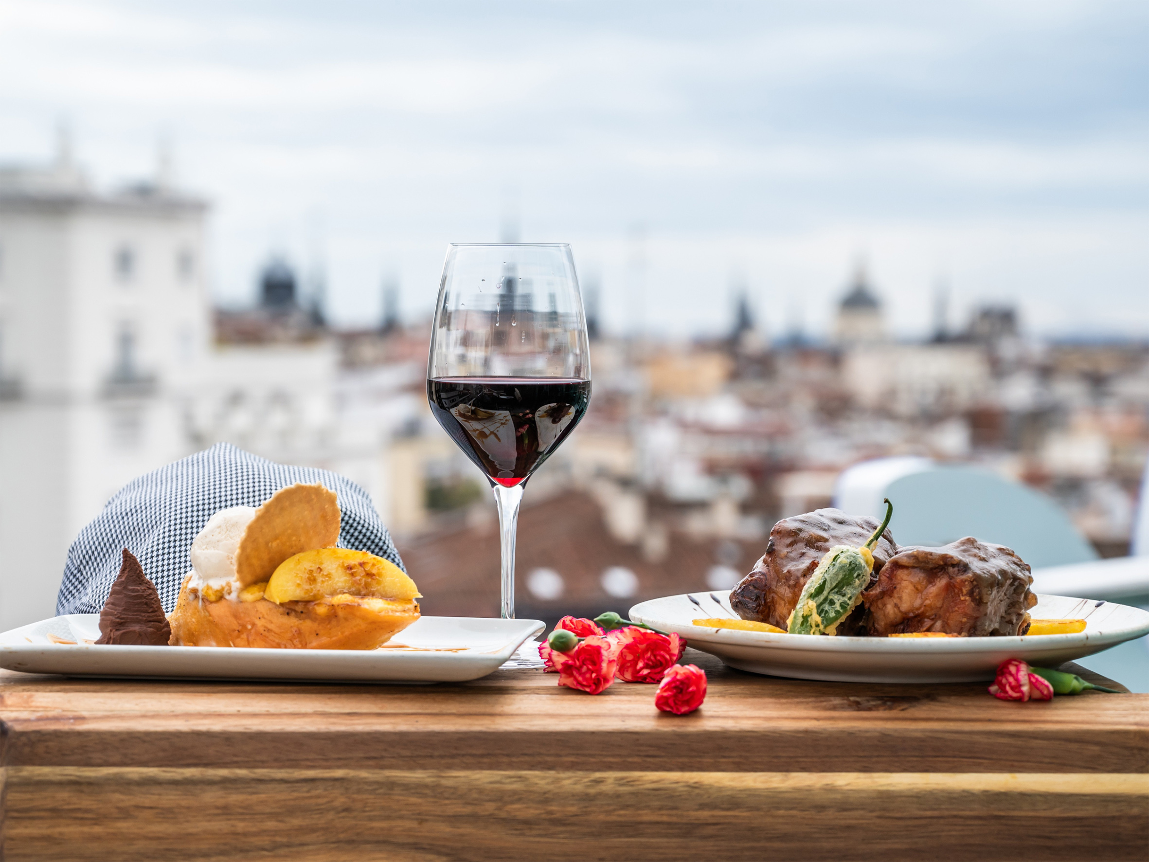En mayo, Madrid se pone muy chulo, e Inhala Terraza, una de las azoteas con mejores vistas del Madrid de los Austrias, ¡también! Ya que se suman a la Feria de San Isidro en los hoteles de Madrid, una castiza y sabrosa iniciativa de AEHM con el siguiente menú, disponible entre semana y en horario de comidas, desde el 5 hasta el 30 de mayo: