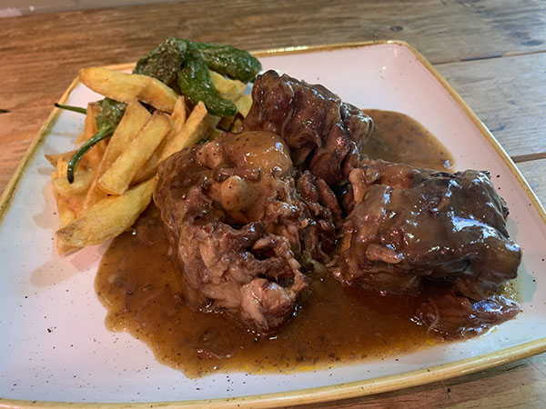 Rabo de vacuno mayor, verdura y vino (26’90 €)