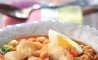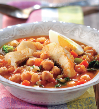 Posteriormente vierte el agua de los pimientos choriceros, salpimienta y cocina durante 10 minutos. Cuando falten 3 minutos para terminar la cocción, agrega las colitas de bacalao y deja hervir todo junto. Retira del fuego, deja templar y sirve.
