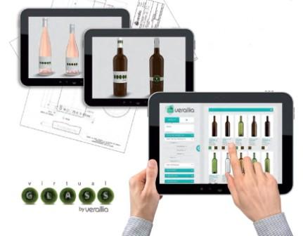 Verallia, líder en envases de vidrio para bebidas y alimentación, lanza Virtual Glass. Una aplicación para tabletas que crea simulaciones 3D de la imagen de un vino a partir de diferentes modelos de botellas y etiquetas. Se reduce el tiempo de diseño y se consigue un ahorro importante de costes a la hora de generar contenidos visuales y prototipos. Gracias a la tecnología de realidad aumentada pueden compararse botellas reales y simuladas en un mismo entorno.