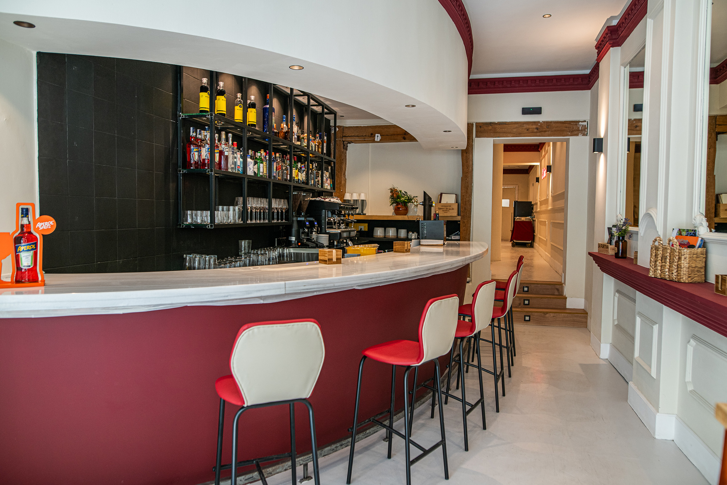El aparentemente tímido local de Chueca tiene una barra en curva para tapear de manera informal que invita a adentrarse y descubrir el resto del espacio, con dos salones independientes: uno para 10 personas; y otro al fondo que puede hacer las veces de amplio reservado y acoger catas y presentaciones, con capacidad para 24. La terraza es un imprescindible en la plaza en cuanto empieza el buen tiempo, y cualquiera de los platos de la carta se puede consumir en ella.
