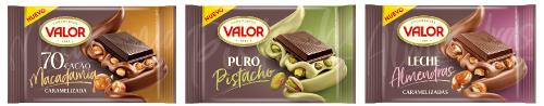 Cuando crees que ya lo has visto todo, y nada te sorprende, llega un giro inesperado para todos aquellos que buscan más; nuevas formas de disfrutar del placer, nuevas experiencias que despierten todos los sentidos. Para vosotros, insaciables del placer, Chocolates Valor lanza una innovadora línea de tabletas, creando nuevas sensaciones en boca, con texturas y sabores exquisitos. Unas tabletas en las que el auténtico chocolate Valor envuelve rellenos súper fundentes, que se unen a texturas crujientes con grandes trozos de frutos secos, exquisitamente seleccionados para llevarte a un nuevo nivel de placer.