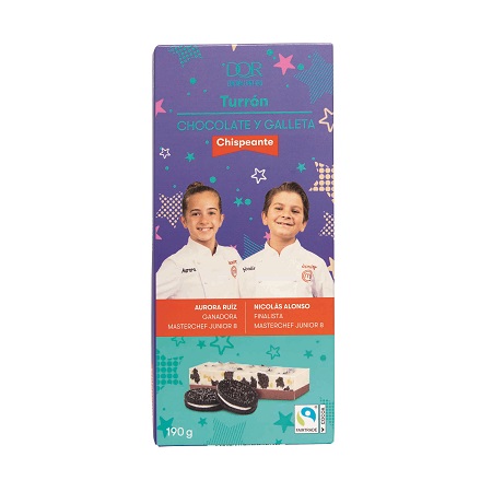 Este turrón ofrece una receta innovadora y divertida, pensada para disfrutar en familia. La base está elaborada con chocolate con leche y chocolate blanco. En su interior, incorpora trozos de galleta de chocolate y nata crujientes y un toque de caramelo chispeante o “popping candy”. Una explosión en boca que combina con el mejor sabor del chocolate y la galleta, que sorprenderá a niños y adultos. “Estamos muy contentos con el lanzamiento de nuestro turrón. Nos lo hemos pasado genial trabajando juntos y con Lidl durante todo el proceso y el resultado nos encanta. ¡Estamos deseando formar parte de miles de mesas españolas estas fiestas! Sin duda, ha sido una experiencia súper divertida”, aseguran Aurora y Nicolás.