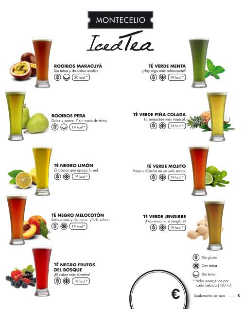 Los iced teas Montecelio se quedan por debajo de las 20 calorías, una cifra récord posible gracias a que se evita totalmente la adición de azúcares. Y, todo ello, sin perder el sabor y una gran variedad para elegir. De hecho, la nueva carta iced tea Montecelio presenta nueve sabores, entre los que destacan las nuevas propuestas: té verde combinado con sabores tan refrescantes como el mojito, piña colada o el jengibre.