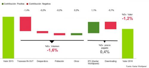 Caída del Gran Consumo durante 2016, mientras crece el consumo fuera del hogar