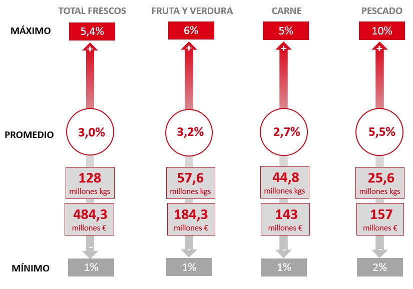 El desperdicio alimentario supone el 3% de las ventas de frescos en la distribución