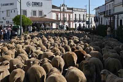 El proyecto BioNNOMÍA celebra con más de 250 personas la llegada del rebaño de ovejas a la Dehesa San Francisco tras atravesar Santa Olalla del Cala