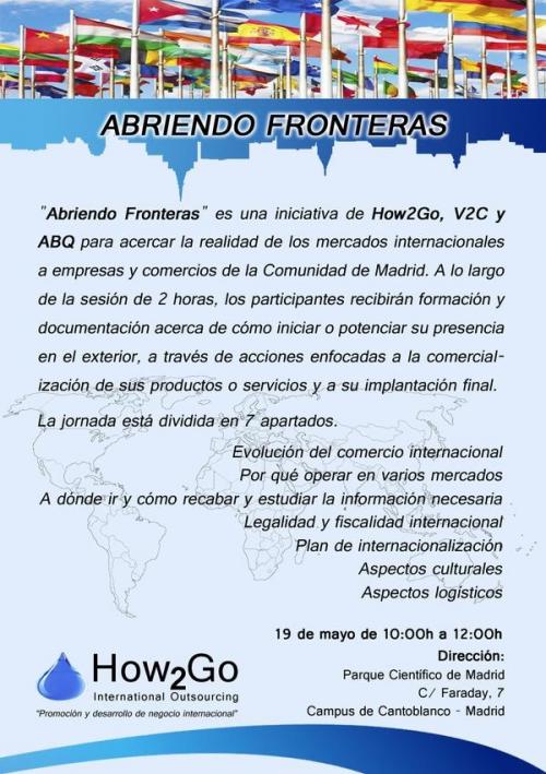 ABQ, How2go y V2C forman un tándem perfecto de disciplinas y conocimientos que harán de “Abriendo Fronteras” una iniciativa completa y útil para todos los participantes, que podrán acercarse a la realidad de los mercados internacionales con las herramientas adecuadas para que el proceso de internacionalización sea exitoso.