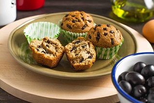 Ingredientes: 30 gr aceitunas negras Hojiblanca, 30 gr aceite de oliva, 15 gr avellanas troceadas, 40 ml leche, 40 gr harina de trigo, ¼ cucharadita de levadura, 25 gr de azúcar moreno, 1 huevo.