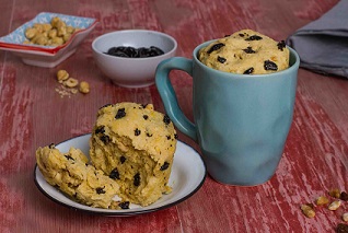 Deshidratamos las aceitunas picadas en el microondas hasta que veamos que están secas. Mezclar todos los ingredientes. Introducir en el mug y hornear en el microondas a 800 WT, 1 minuto o minuto y medio (dependiendo del micro).