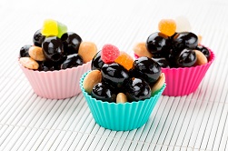 Ingredientes: Aceitunas negras, gominolas, almendras tostadas, aceite de oliva virgen extra.