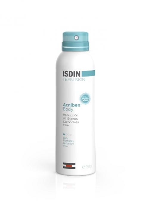 Acniben Body de ISDIN es el primer spray corporal especialmente indicado para los granos de la espalda y zonas de difícil acceso. Posee un aplicador 360º que lo convierten en un producto fácil y cómodo de usar, consigue acceder a zonas difíciles y un secado rápido gracias a su potente formula..