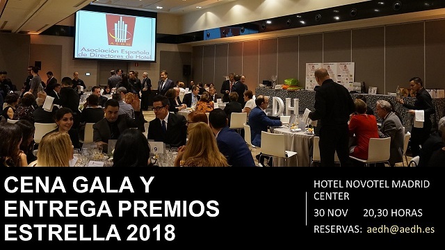 Con el motivo de premiar las trayectorias profesionales de personalidades del sector hotelero, la AEDH celebrará el próximo 30 de noviembre los Premios Estrella. Durante la gala, que tendrá lugar a las 20.30 horas en el Hotel Novotel Madrid Center, se entregarán galardones a Mejor Director del Año (Estrella de Oro), Director Joven Promesa (Estrella de Plata) y al Asociado Colaborador (Estrella de Bronce).