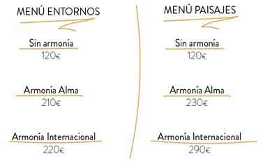 El restaurante dispone de dos menús con el mismo peso gastronómico, pero una distribución diferente a lo largo de la degustación. Ambos pueden acompañarse tanto de la Armonía de Vinos de los Proyectos Alma Carraovejas como de la Armonía de Vinos Nacionales e Internacionales.