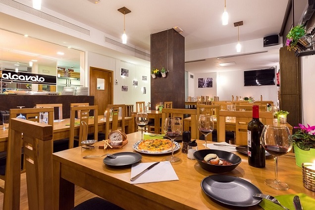 Alcavalo (www.alcavalo.com) es un escaparate al consumidor gracias al gran ventanal hacia la calle y a la cristalera con vistas a la cocina. En el interior predominan materiales naturales como la madera de pino en sus mesas o las plantas que lo adornan. Es un lugar acogedor, con capacidad para 60 personas y donde el precio está muy ajustado. 11 € las pizzas, 9 € las pastas… en total, unos 20 € de ticket medio con postre y vino. Venden las materias primas que usan en el local y tienen menú para niños por 8,40 €. Su horario, reducido para conciliar la vida laboral con la familiar, es: los jueves de 21:00 a 00:00 h, viernes y sábados de 13:00 a 16:00 h y de 21:00 a 00:00 y los domingos de 12:00 a 18:00. Un trocito del Mediterráneo en Torrejón.