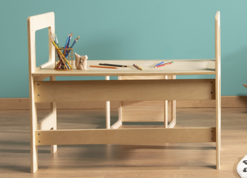 La mesa de escritorio evolutiva de ALDI destaca por su versatilidad, gracias a su doble función como banco o mesa. Este innovador escritorio se puede regular hasta ocho alturas, adaptándose a los más pequeños según van creciendo. Permite un rango de altura de los 46 a los 71 cm, por lo que es apto para niños y niñas de a partir de 18 meses. Un indispensable de cualquier habitación infantil que estará disponible por 79,99 euros.