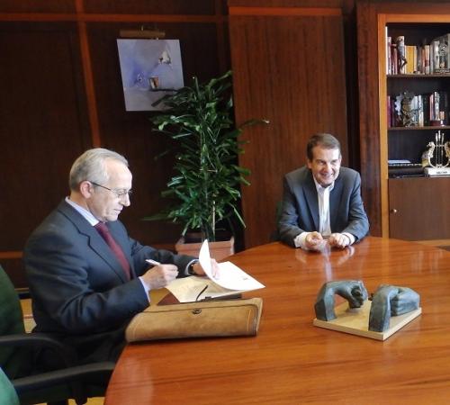 Al acto de firma asistieron el director general de Vegalsa-Eroski, Joaquín González, y el alcalde del Concello olívico, Abel Caballero.