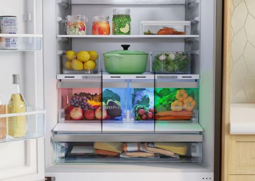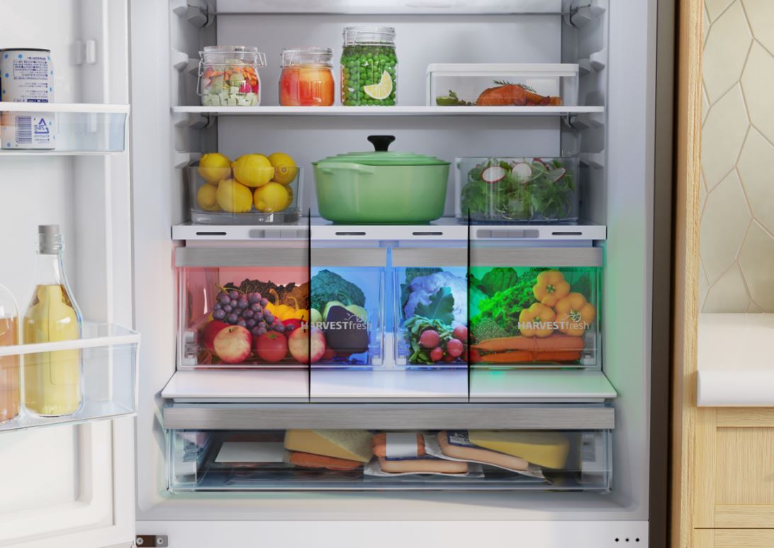Colocar frutas y verduras en los cajones diseñados para controlar la humedad es esencial para mantener la frescura. La tecnología HarvestFresh de Beko, presente en sus frigoríficos, utiliza un sistema de luces de tres colores que imita la luz natural del sol durante su ciclo diario para conservar las vitaminas de los alimentos durante más tiempo.