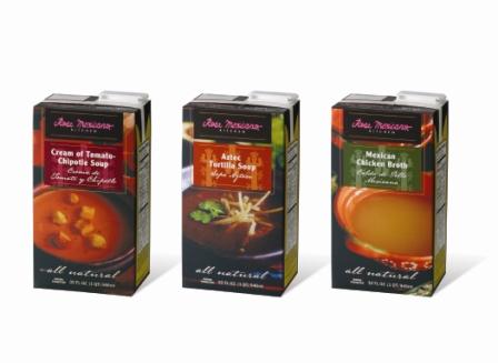 Por ejemplo, las sopas mejicanas especiales de Rosa Mexicano Kitchen, que se venden en los EE.UU bajo el rótulo 'todo natural', están posicionadas específicamente como cocina mejicana natural. La cocina mejicana es extremadamente popular en los EE.UU, y muy conocida por la abundancia de ingredientes y especias poco corrientes que se necesitan para crear los típicos platos picantes. La marca Rosa Mexicano representa la auténtica cocina mejicana y la utilización de ingredientes mejicanos naturales y originales. La gama “todo natural” de Rosa Mexicano se ofrece en las variedades Caldo de pollo mejicano, Sopa de tomate y chipotle, y Sopa azteca de tortilla (foto: Rosa Mexicano).