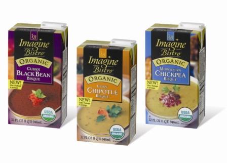 'Imagine Bistro Organic' es una gama de sopas para el mercado estadounidense que se llenan en envases de cartón asépticos de Foodswing. El envase lleva la etiqueta 'USDA Organic' (foto: Imagine - Organic), garantía de que se cumple con las normas nacionales obligatorias desarrolladas por el Departamento de Agricultura de los EE.UU para productos agrícolas producidos orgánicamente. Los productos que presentan esta etiqueta proceden de granjas y negocios que han sido aprobados conforme a estas normas para un cultivo y procesamiento orgánicos.