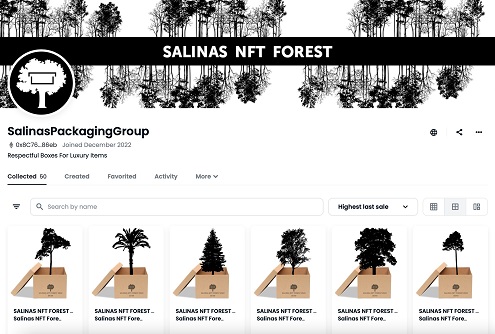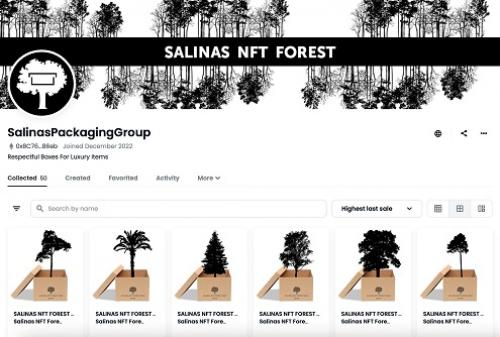 Salinas Packaging Group es la empresa líder en España en el packaging rígido para los sectores premium y lujo, con más de 25 años de historia. La firma lleva años desarrollando una fuerte estrategia ESG. 2022 ha supuesto un punto de avance muy importante, ya que han visto la luz numerosos proyectos que llevaban tiempo gestándose, y por ello decidió recibir el 2023 creando el proyecto SALINAS NFT FOREST. Esta acción le permite regalar compensación de emisiones CO2 a sus clientes, convirtiendo en una colección limitada de NFTs la reforestación de una hectárea de bosque calcinado y obsequiando con ello a sus principales clientes y grupos de interés. En concreto, esta hectárea pertenece a un territorio forestal devastado por las llamas en 2019 y listo para ser reforestado.