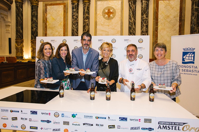 El Ayuntamiento de San Sebastián acogió ayer la presentación de la XII edición del Campeonato de Pintxos Amstel Oro de Euskadi, Navarra e Iparralde, una de las competiciones nacionales más prestigiosas de su categoría y con la que Amstel Oro colabora por tercer año consecutivo, reafirmando su compromiso con la cultura gastronómica y la hostelería del País Vasco.