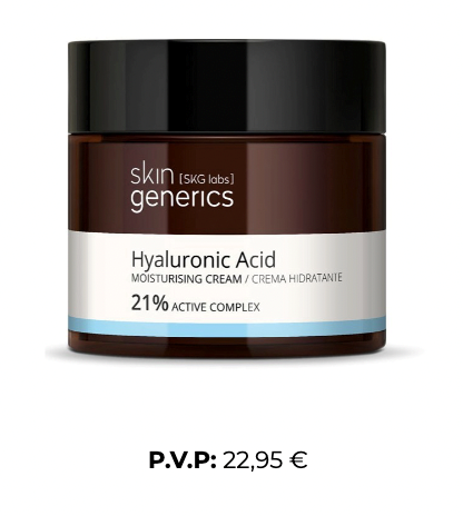 Cuando la barrera de la piel se ve comprometida, puede ocasionar que esté falta de humedad. ¿La mejor manera de solucionarlo? Además de con un producto rico en vitamina F, sumando una fórmula rica en ácido hialurónico, el ingrediente estrella a nivel de humectación. La Crema Hidratante Ácido Hialurónico de Skin Generics trabaja con ácido hialurónico de bajo peso molecular para penetrar en la piel con más profundidad. Posee, asimismo, diglicerina y un compuesto de patente propia, Lipomoist, que ayudan a evitar la deshidratación.