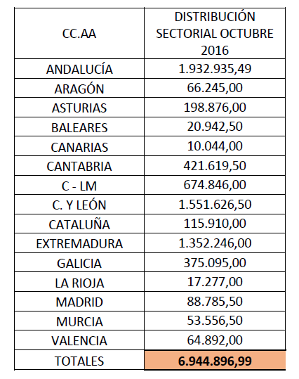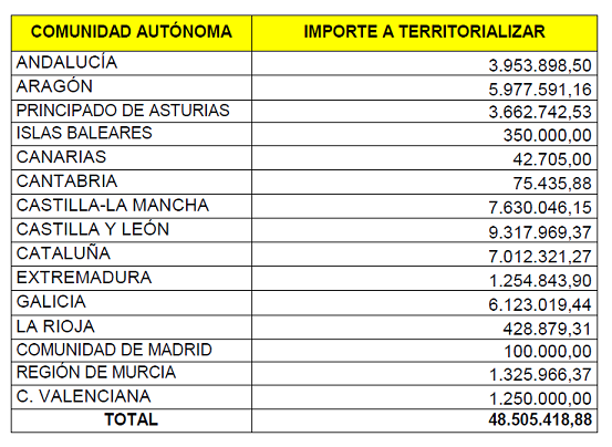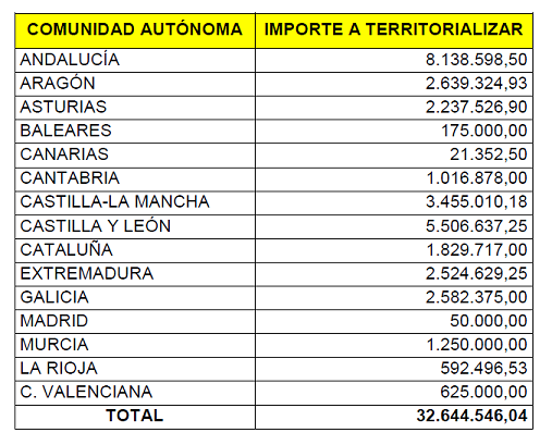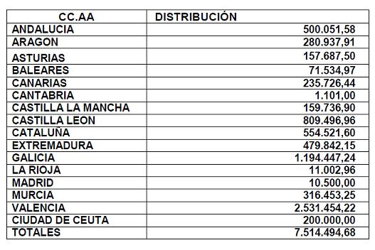 El Consejo de Ministros aprobó el pasado viernes, la propuesta del Ministerio de Agricultura y Pesca, Alimentación y Medio Ambiente, el reparto de 104.821.622,72 euros entre las Comunidades Autónomas para el desarrollo de programas agrícolas, ganaderos y de desarrollo rural. Con ello se formalizan los criterios de reparto y los compromisos financieros acordados en las Conferencias Sectoriales de Agricultura y Desarrollo Rural celebradas los pasados meses de junio y octubre.