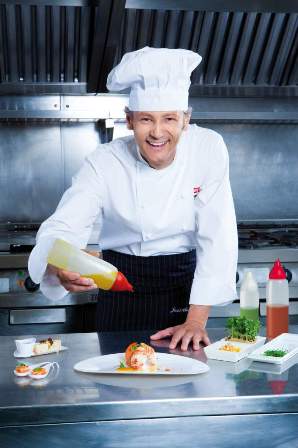 ARAVEN trabaja muy de cerca con el profesional de hostelería para cubrir todas sus necesidades. Su nuevo producto está diseñado ergonómicamente y se adapta a la palma de la mano permitiendo controlar, por la presión ejercida, el caudal de salsa utilizada. Además, a diferencia de los “biberones de cocina” tradicionales, incorpora una válvula de silicona antigoteo que permite decorar cada plato de forma limpia y precisa así como aliñar cada alimento con la cantidad justa de aderezo.