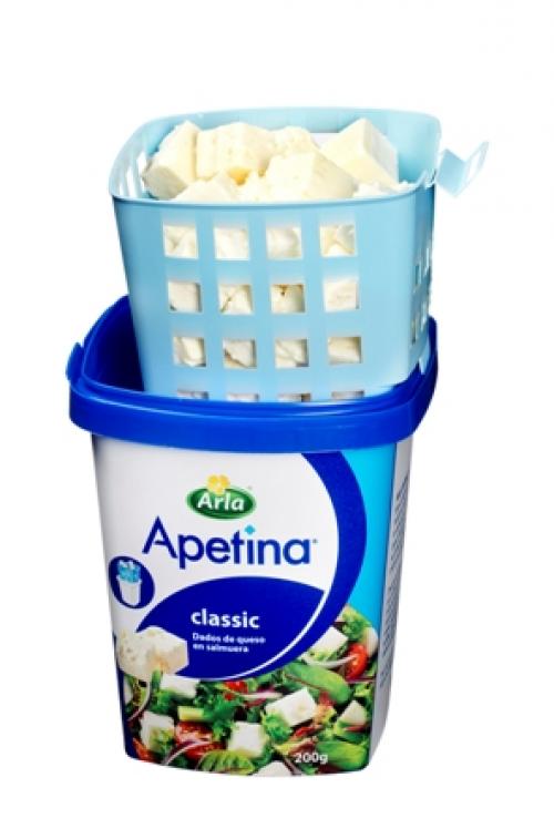 Arla Foods, empresa especializada en la fabricación de productos lácteos 100% naturales, dispone en su amplio catálogo de Arla Apetina®, un sabroso queso blanco, acorde con la tradicional receta griega, cortado en dados. Además, la empresa no sólo piensa en el contenido sino también en la presentación y funcionalidad del envase.