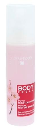Body Fresh está disponible en cuatro fragancias naturales: Flor de Cerezo, Te Verde, Rosa Blanca y Cedro.