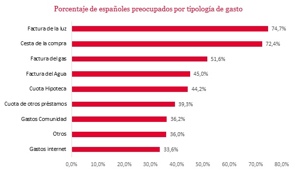 Un contexto que aún supondrá un mayor esfuerzo para las familias, cada vez más alarmadas por el aumento de los gastos cotidianos. Y es que, según una encuesta sobre gasto doméstico realizada por UCI (Unión de Créditos Inmobiliarios), entidad especialista en financiación sostenible de la vivienda, en la que han participado más de 2.000 personas de todo el país, al 74% de los españoles le preocupa sobre todo su factura de la luz y el 72% teme también el gasto que supone llenar la cesta de la compra.
