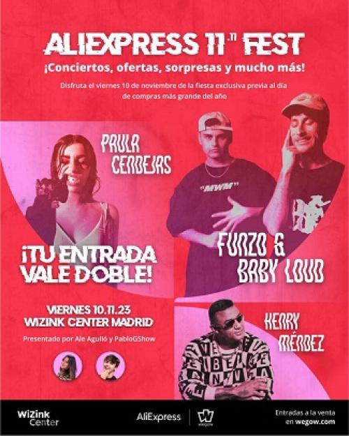 El 11.11 será una nueva oportunidad para reiterar el compromiso de AliExpress de estar más cerca de los consumidores a nivel local, con una serie de iniciativas especiales sólo para el mercado español. En este sentido, el 10 de noviembre, AliExpress celebrará su concierto "AliExpress 11.11 Fest" que reunirá a algunos de los artistas más populares del momento: el dúo de pop-rap Funzo & Baby Loud, el cantautor y productor discográfico de fama mundial Henry Méndez y la moderna princesa del pop Paula Cendejas se subirán al escenario para ofrecer más de tres horas de buena música y entretenimiento en el WiZink Centre (Madrid), además de otras sorpresas, sorteos y mucho más para arrancar el Festival Global de Compras 11.11 de 2023. El concierto se retransmitirá en directo en la web de AliExpress.