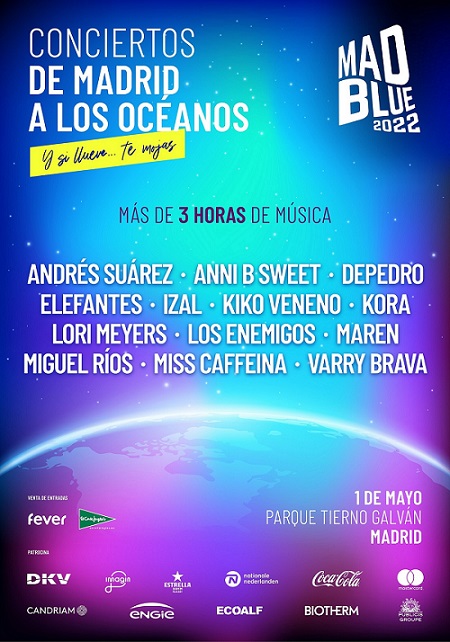 Como cierre se celebrará un evento muy especial para apoyar la causa: un concierto en el que grupos y artistas de la talla de Andrés Suárez, Anni B Sweet, Depedro, Kiko Veneno, Kora, IZAL, Lori Meyers, Miguel Ríos, Miss Caffeina o Varry Brava “se mojarán” y unirán sus voces por los océanos. Tres horas de música en directo y expertos en desarrollo sostenible que conversarán con los asistentes sobre del mensaje de MadBlue y la importancia de cuidar el planeta. Una parte de los beneficios irán destinados a respaldar acciones de cuidado del medioambiente llevadas a cabo por la Fundación Piel de Atún.