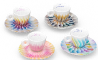 En las cuatro tazas inspiradas en el “Tríptico de la Reencarnación”, la artista utiliza colores vivos y vibrantes para ilustrar la transición desde una sociedad contenida que historicamente se ha impuesto a la mujer hasta llegar a la libertad cultural y creativa. Cada taza, a través de su creatividad, representa una mujer en diferentes épocas de la historia: Desde la Reina de Francia Maria Antonietta, la filósofa y escritora Madame de Stael hasta la novelista George Sand y la escritora Virginia Woolf.