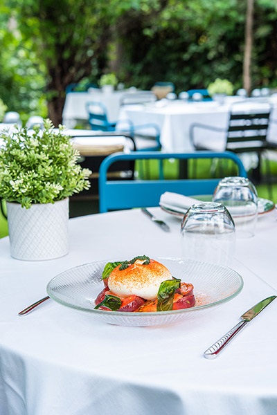 Pero las sorpresas no acaban aquí, porque en su carta principal, la de sala y el resto de mesas del jardín, donde se come con mantel, también hay novedades. Con la estación llegan platos como la Ensalada de burrata, tomate azul, cristal de albahaca y perlas de pesto; un espectacular Pulpo nacional a la brasa con vinagreta de temporada, un Tataki de atún rojo con mahonesa de avellana tostada y caviar de AOVE; o un plato con ‘alma marinera’ como el Lomo de lubina sobre crema de cebolla dulce y crujiente de puerro. Muchas opciones frescas que encandilarán a su ya fiel clientela.