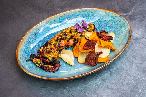 ¿Y qué no puede faltar hablando de tapeo? Pues una ración de Ensaladilla rusa con Alma -si lleva ‘apellido’, ¡hay que probarla!-, una Degustación de Gildas para los de buen paladar, o por supuesto, su Cecina de León, aquí aderezada con nuestro Aceite Virgen Extra Alma Cosecha Temprana y almendras fritas, una Tabla de quesos nacionales con regañás de Don Pelayo, unas Ostras naturales -con o sin champagne Veuve Clicquot-. Y sí, en esta zona también se puede acabar con dulce… ¿un Corazón de chocolate con helado de jengibre?