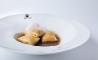 Los platos con los que Asier Alcalde ha sido el primer ganador de esta semifinal han sido: canelón de salmonete ahumado y carabinero con falso escabeche, de segundo, rabo de cerdo con puré de garbanzos, trufa y verduras de invierno y, de postre, crema de jengibre, espuma de bergamota, lichis, melocotones y helado de hierba luisa.