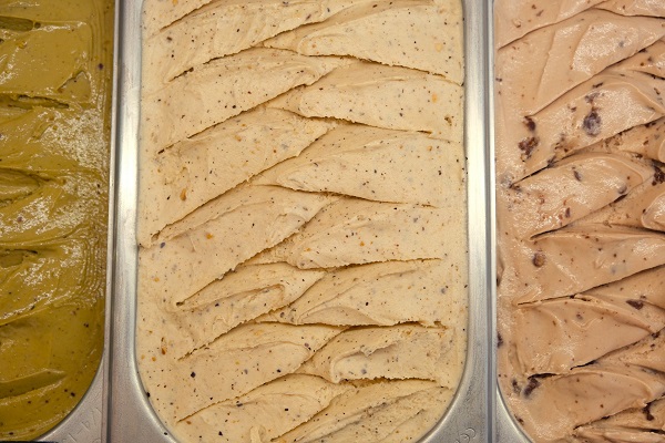 Elaborados en el obrador de la heladería, en la carta hay más de 45 helados y sorbetes, aunque en el día a día la vitrina cuenta con unos 37 recién elaborados. Una parte de la gama es de inspiración clásica, otros son de temporada y sorprenden con excelentes recetas de autor que se han convertido en especialidades de la casa. Es el caso, por ejemplo, de los helados de flores (el azafrán, el jazmín, la lavanda y la rosa...), así como el de miel, azahar y dátiles. Este último es una delicatessen de reminiscencias árabes y andaluzas que sorprende: una auténtica seña de identidad de Aurelien Barcelona.