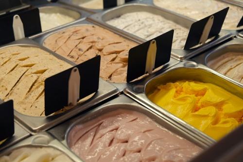 Elaborados en el obrador de la heladería, en la carta hay más de 45 helados y sorbetes, aunque en el día a día la vitrina cuenta con unos 37 recién elaborados. Una parte de la gama es de inspiración clásica, otros son de temporada y sorprenden con excelentes recetas de autor que se han convertido en especialidades de la casa. Es el caso, por ejemplo, de los helados de flores (el azafrán, el jazmín, la lavanda y la rosa...), así como el de miel, azahar y dátiles. Este último es una delicatessen de reminiscencias árabes y andaluzas que sorprende: una auténtica seña de identidad de Aurelien Barcelona.