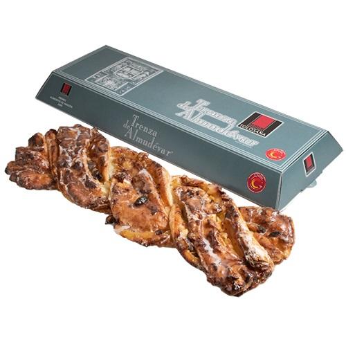 La Trenza de Almudévar recoge la tradición pastelera de cuatro generaciones. Corteza crujiente, relleno tierno y cremoso, intenso aroma de mantequilla, donde las nueces, almendras fileteadas y las pasas maceradas en ron, con una cubierta de glasa para darle brillo y una textura crujiente, la convierten en el postre favorito.