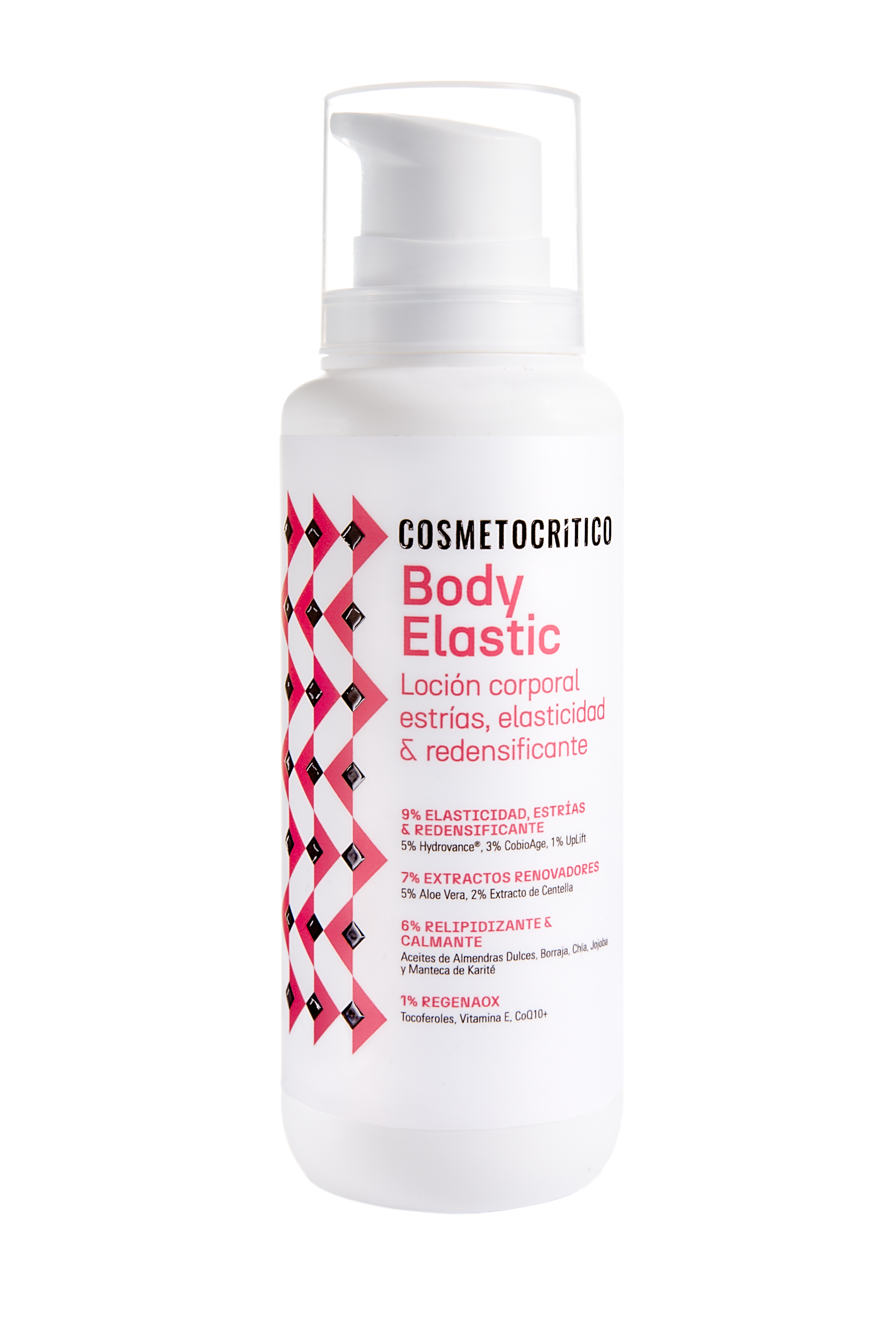 Body Elastic de Cosmetocrítico: Loción corporal que previene y mejora el aspecto de las estrías, reafirma, redensifica y puede aplicarse como tratamiento antioxidante diario a la vez que hidrata la piel. PVP: 36,90€. https://cosmetocritico.com/producto/body-elastic-200ml-crema-corporal-antiestrias-reafirmante-antioxidante/