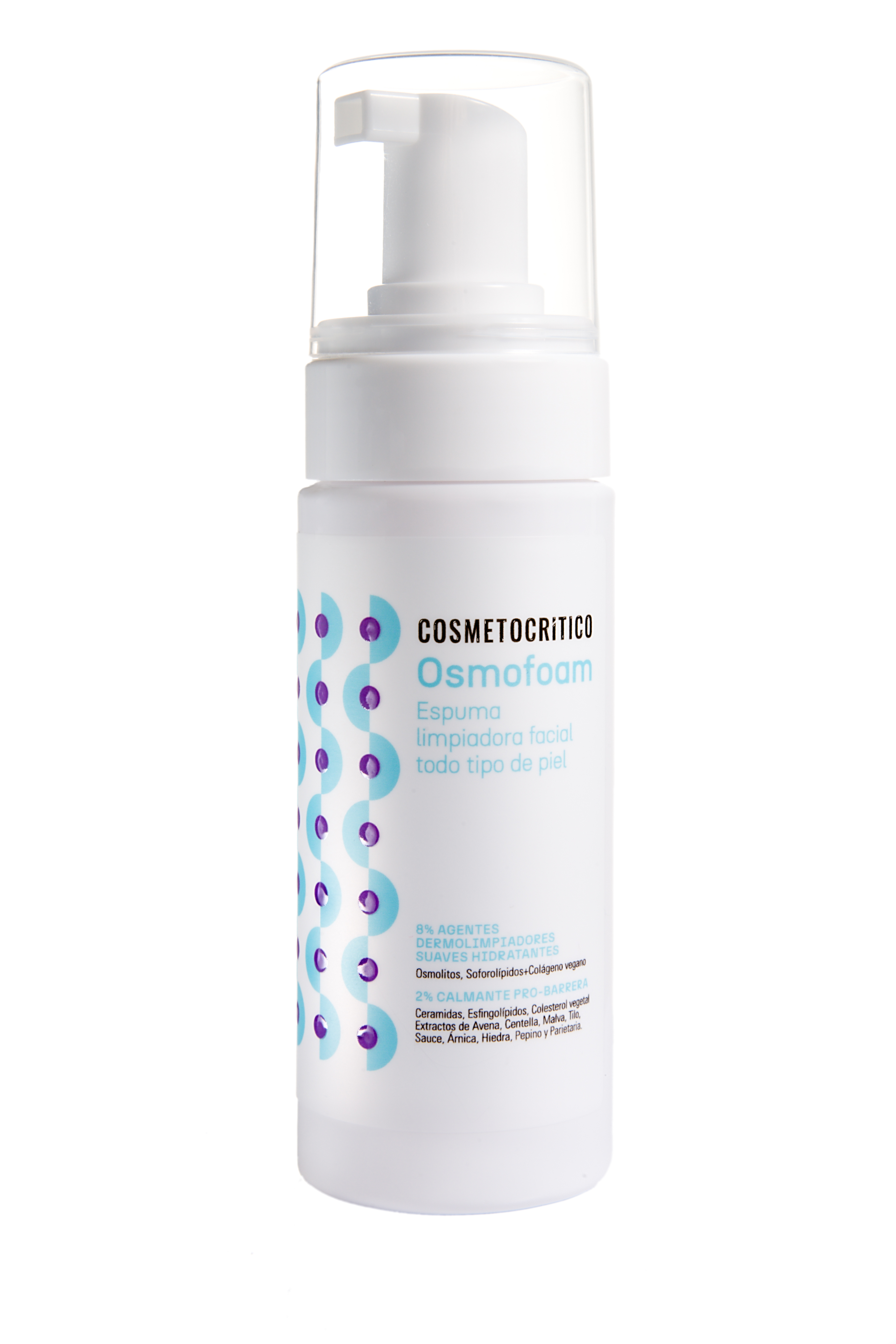 Osmofoam de Cosmetocrítico: Espuma de textura nube que limpia con suavidad respetando la barrera cutánea. PVP: 24,90€. https://cosmetocritico.com/producto/osmofoam-150ml-limpiador-facial-hidratante-calmante-ceramidas/