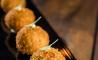 Ostra francesa con ponzu cítrico y algas / Croqueta de txangurro con curry rojo picante / Dado de salmón salvaje con salmorejo verde / Mousse de foie / Shot de Pisco Sour