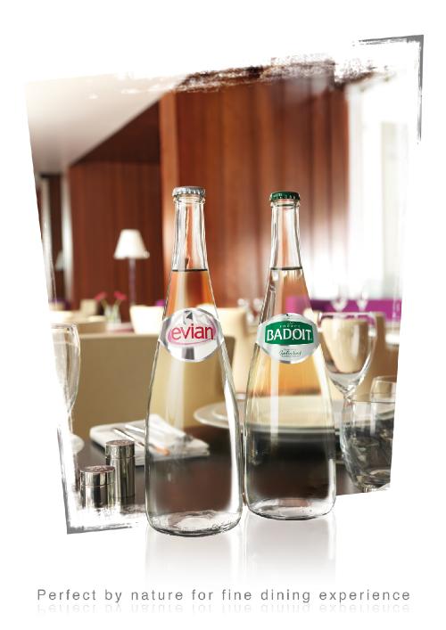 A su vez, la composición del agua mineral natural Evian, rica en bicarbonatos, calcio y magnesio y con niveles bajos de sodio, nitratos y sulfato, se suma a las excelentes características de Badoit, en su reto de constituir el binomio ideal para hoteles y restaurantes. Evian se define por su pureza alpina, su armonía y equilibrio gustativo, características que son el resultado de sus 15 años de filtrado natural.