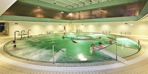 Unas excelencias que incluyen baños turcos, saunas, varias piscinas de hidromasaje, cabinas para masajes, duchas para todo tipo de tratamientos personalizados, además de una piscina de flotabilidad, una ideal galería para el reposo, un solarium, un gimnasio y el broche de oro, un hotel a la altura.